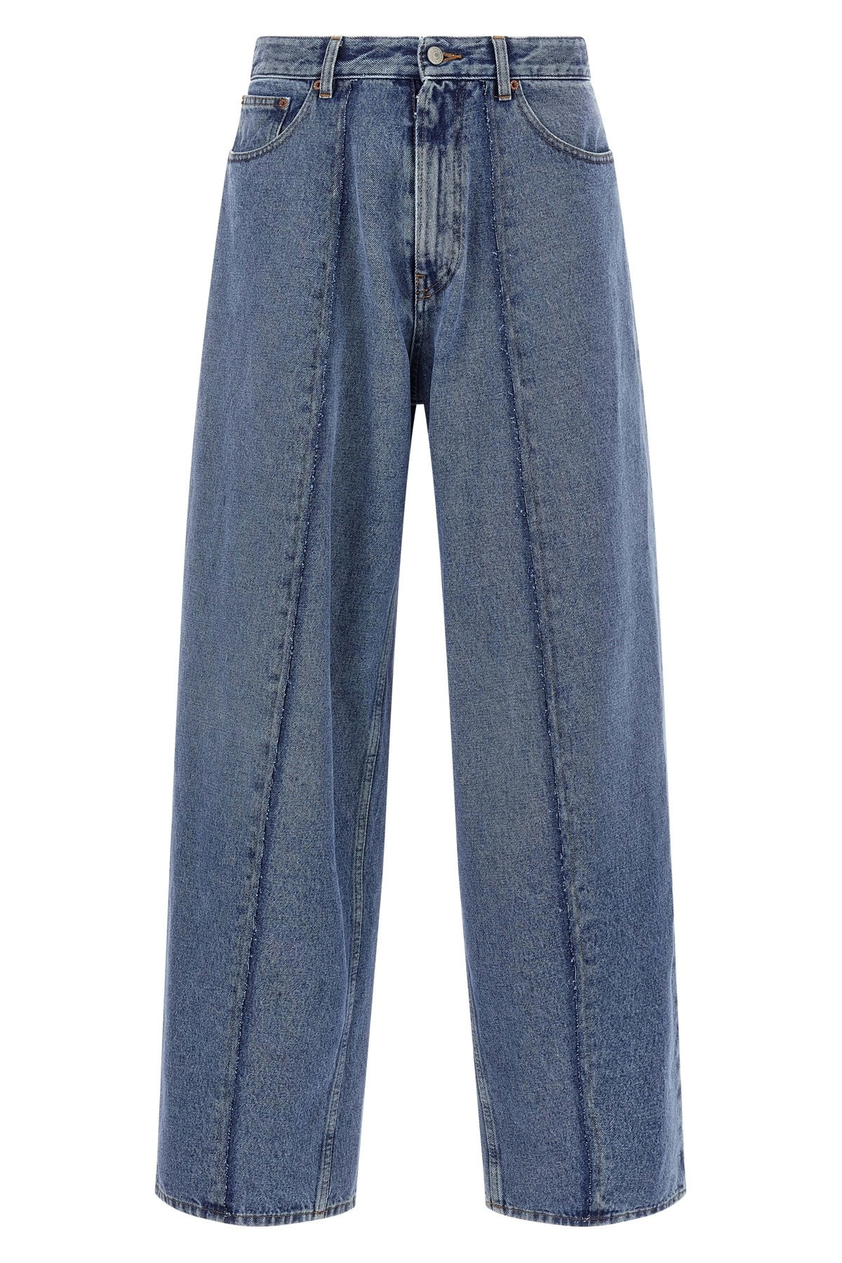cod. SH0LA0011M30018967 '5 pockets' wide leg jeans in cotton denim with front stitching, leather back logo tag with logo print, hook and button zip closure, 5 pockets. Color: Blue Size & Fit: Oversized fit Composition: 100% cotton Made in: Italy