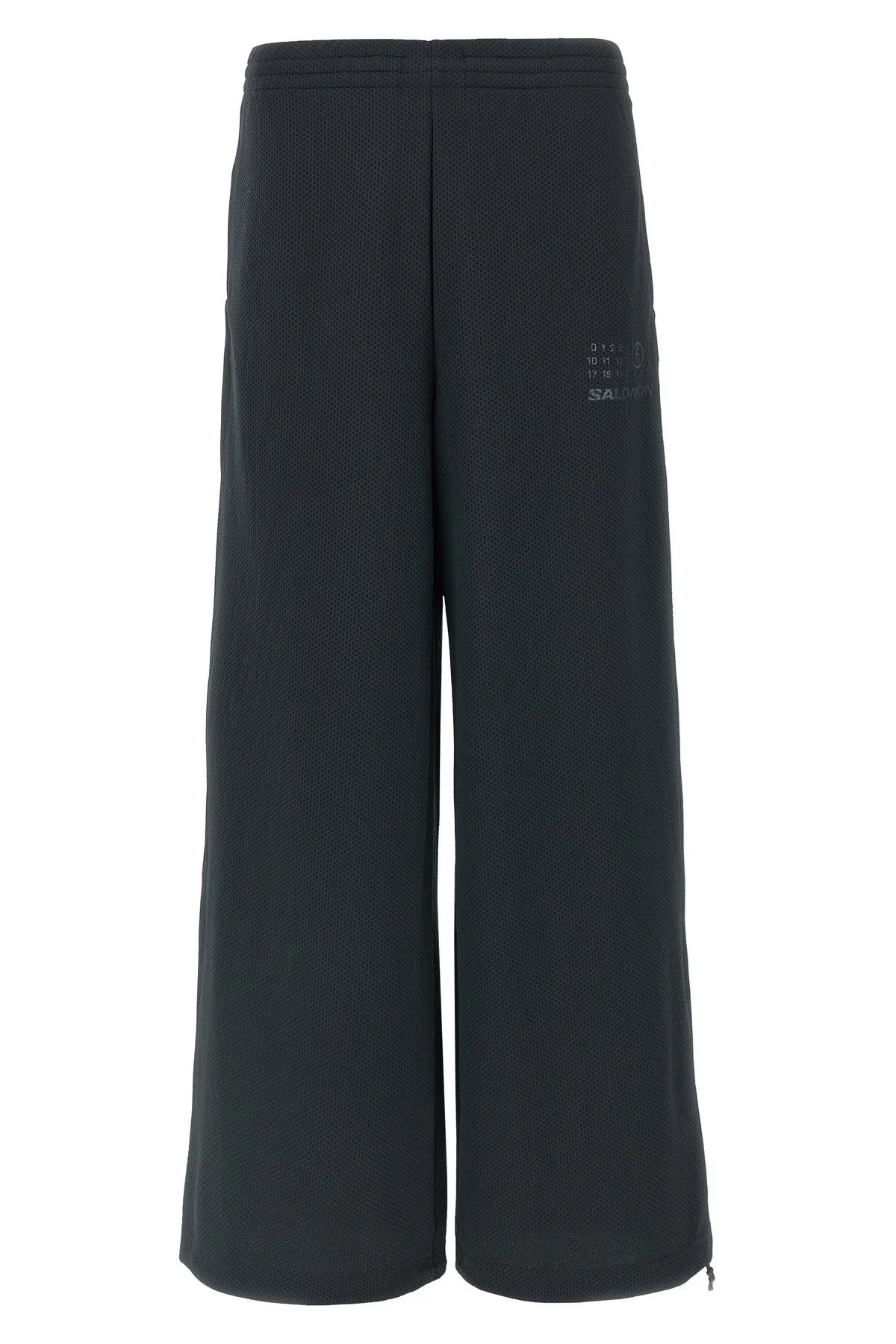 cod. SH0KA0058M20139899 Capsule joggers MM6 Maison Margiela x Salomon in honeycomb technical fabric, embossed 'Numeric signature MM6' at the front, drawstring elastic waistband, pockets, wide and straight leg, back 'White Stitch Line', drawstring at the hem. Color: Black Size & Fit: true to size fit Composition: 100% polyester Made in: Indonesia PROMO CODE NOT APPLICABLE