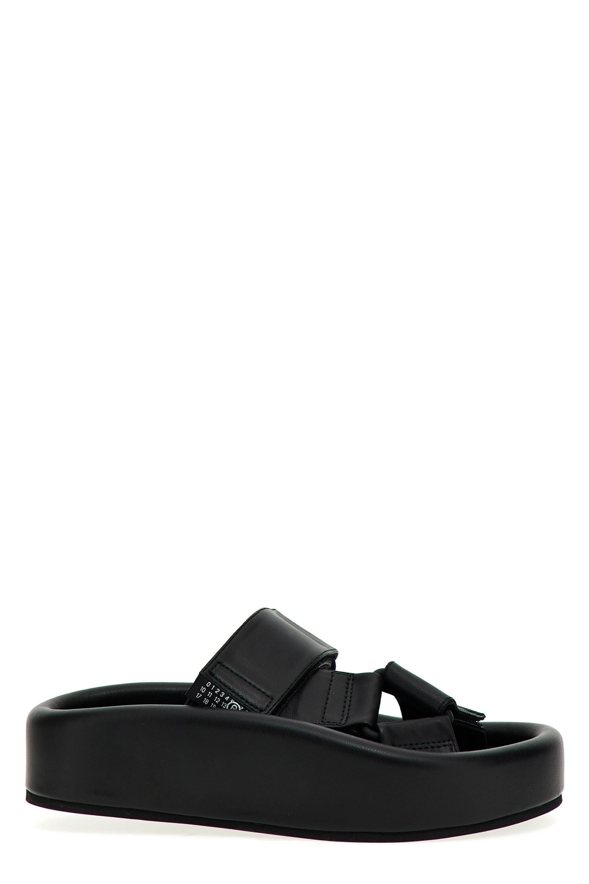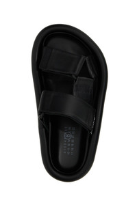 cod. S59WP0206P6383T8013 Leather sandals, adjustable velcro bands, rubber sole. Color: Black Size & Fit: EU WOMEN Composition: 100% leather Made in: Spain