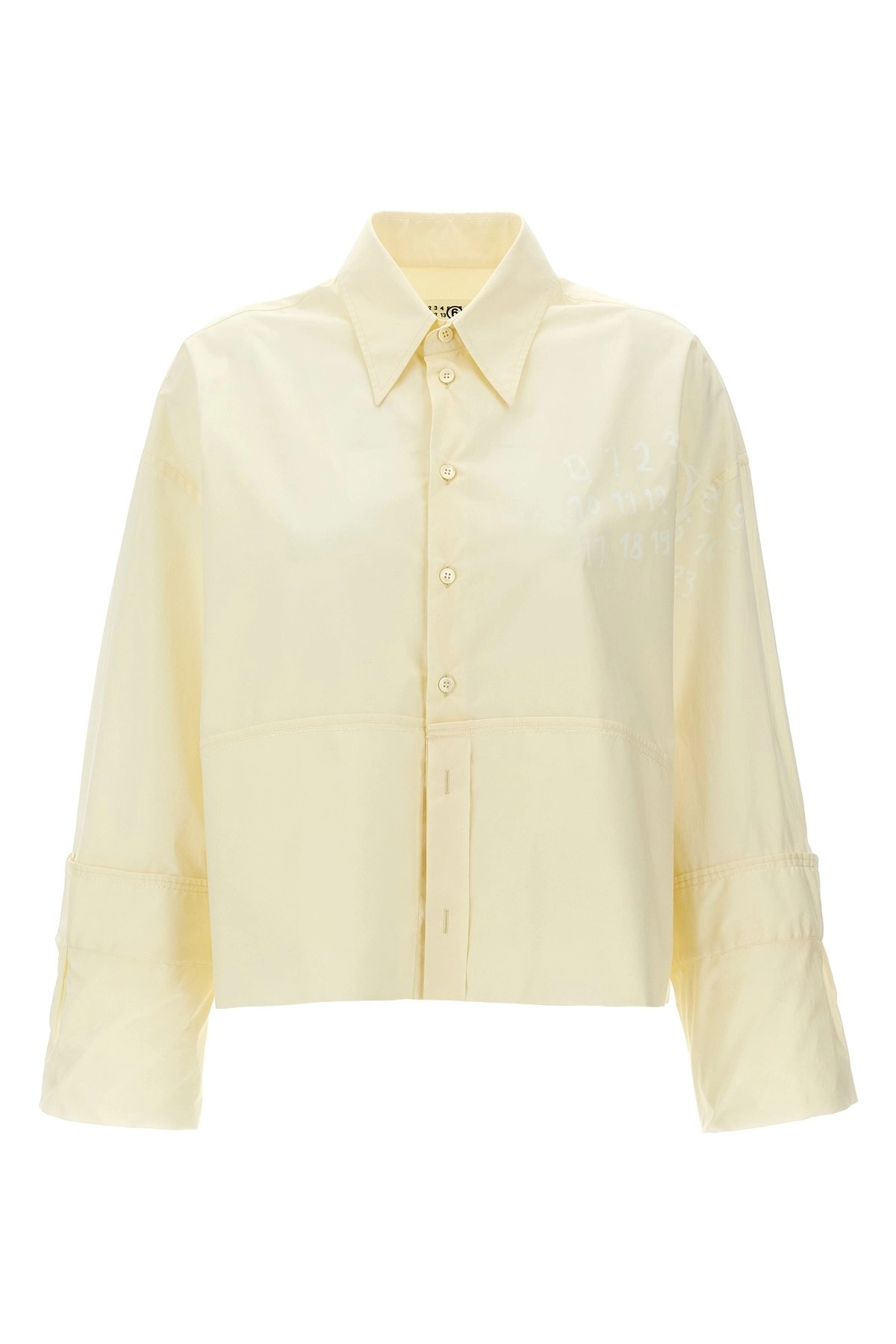 cod. S62DT0034S47294102 Cotton shirt with front logo print, button closure, long and wide sleeves with maxi turned-up cuffs. Color: White Size & Fit: true to size fit Composition: 100% cotton Made in: Italy