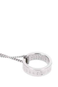 cod. SM6UU0048P7296951 Metal chain necklace, ring pendant with removable engraved 'Numeric Signature MM6', carabiner closure, adjustable. Color: Silver Composition: 100% brass Made in: Italy