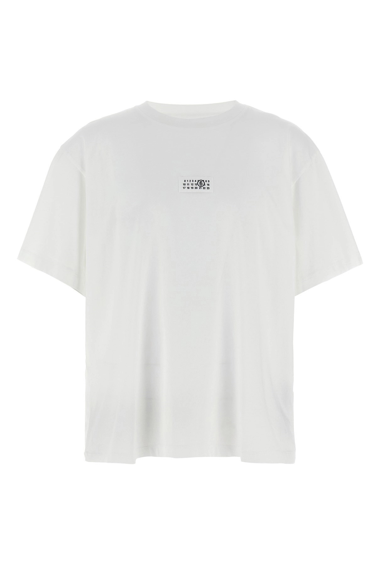 cod. SH0GC0032S24312101 Cotton jersey T-shirt with front 'Numeric signature MM6' patch, crew neck, short sleeves. Color: White Size & Fit: oversized fit Composition: 100% cotton Made in: Portugal