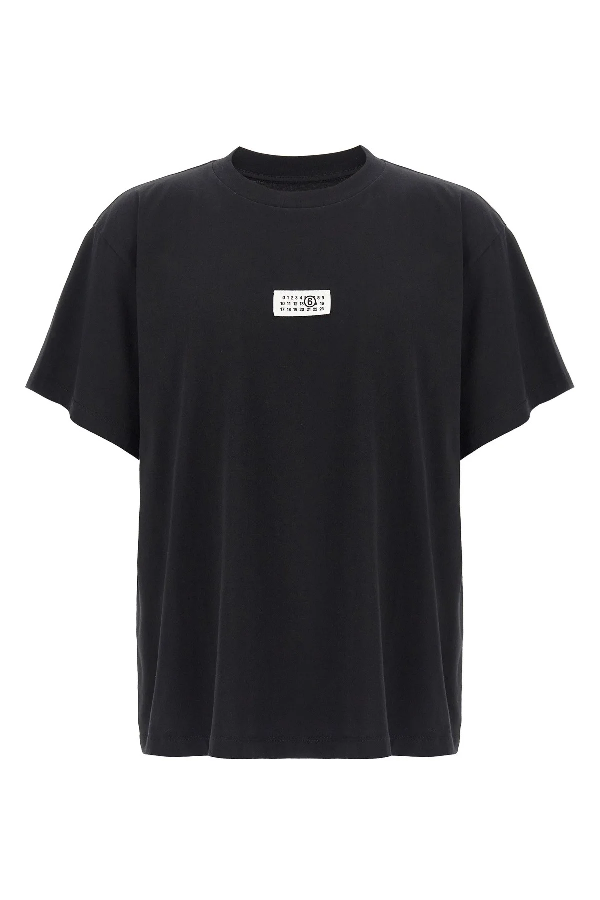 cod. SH0GC0032M20170900 Cotton jersey T-shirt with contrasting 'Numeric Signature MM6' patch on the front, crew neck, short sleeves, 'White Stitch Line' on the back. Color: Black Size & Fit: Comfort fit Composition: 100% cotton Made in: Italy