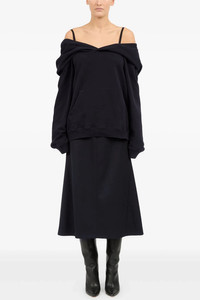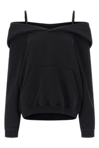 cod. S52GU0244M25014900 Brushed cotton sweatshirt, oversized hood that turns into a draped neckline, off-shoulder model with adjustable braces, kangaroo pocket, long cuffed sleeves, back 'White stitch line'. Color: Black Size & Fit: Comfort fit Composition: 100% cotton Made in: Italy