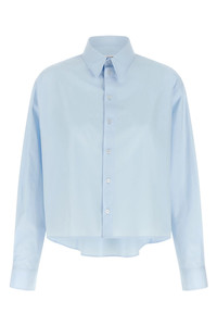 cod. S52DT0064M35480501 Cotton poplin shirt, collar, front button closure, asymmetric length, raw cut back inserts, long cuffed sleeves. Color: Light Blue Size & Fit: Comfort fit Composition: 100% cotton Made in: Italy