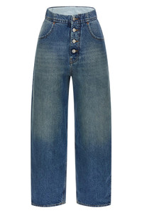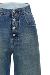 cod. S52LA0235M30058965 Stonewashed cotton denim jeans with contrast stitching, high waist, straight leg, front button closure, pockets, 'White Stitch Line' and 'Numeric Signature MM6' back logo tag. Color: Light Blue Composition: 100% cotton Size&Fit: true to size fit