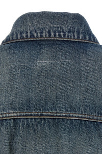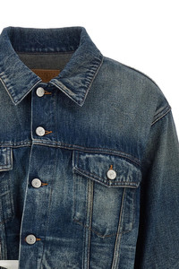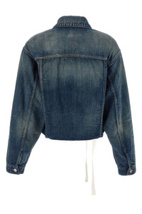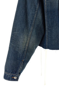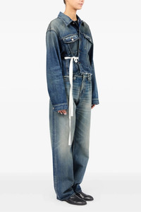 cod. S52AM0340M30017962 Stonewashed cotton denim jacket with asymmetric cut wallet tied at the waist with a contrast webbing, shirt collar, front button closure, pockets, raw cut hem, long sleeves with cuffs and dropped shoulder. Color: Blue Size & Fit: Comfort fit Composition: 100% cotton Made in: Italy