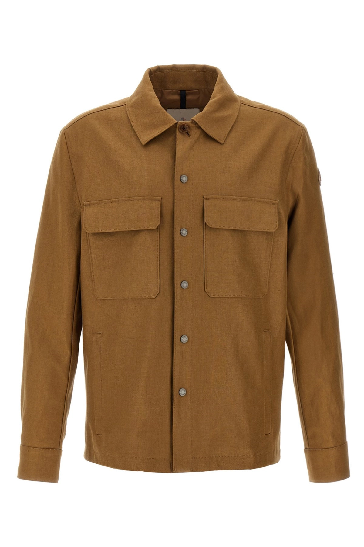cod. K10911G00031598HF251 'Callaqui' adhesive linen jacket, shirt collar, AirSoft lining, front zip and snap button closure, pockets, long sleeves with cuffs and tone-on-tone leather logo patch, side slits. Color: Brown Size & Fit: true to size fit Composition: 74% flax 26% polyester Made in: Romania