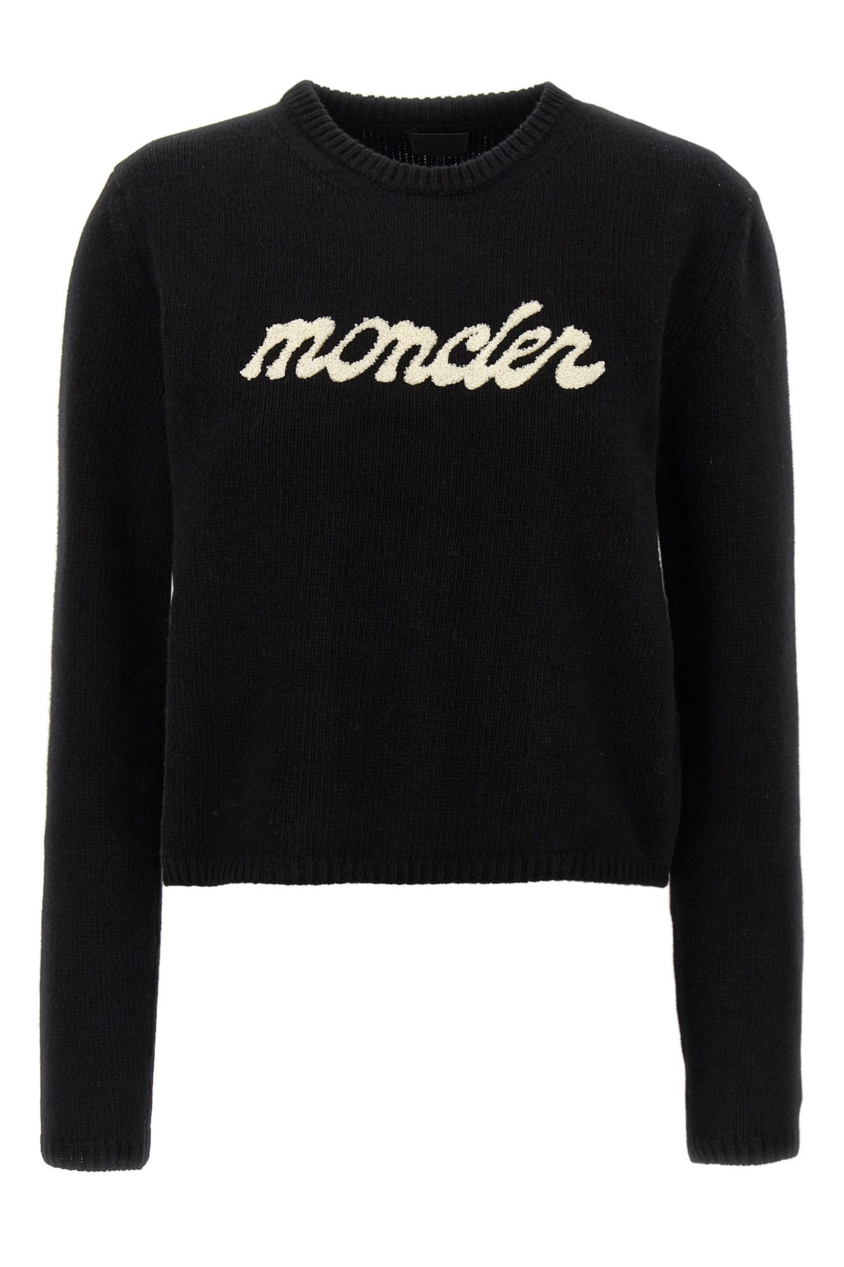 cod. K20939C00004M4281999 Fineness 5 shaved wool and cashmere blend sweater, front chenille logo embroidery, crew neck, long sleeves. Color: White/Black Size & Fit: true to size fit Composition: 90% virgin wool 10% cachemire Made in: Italy