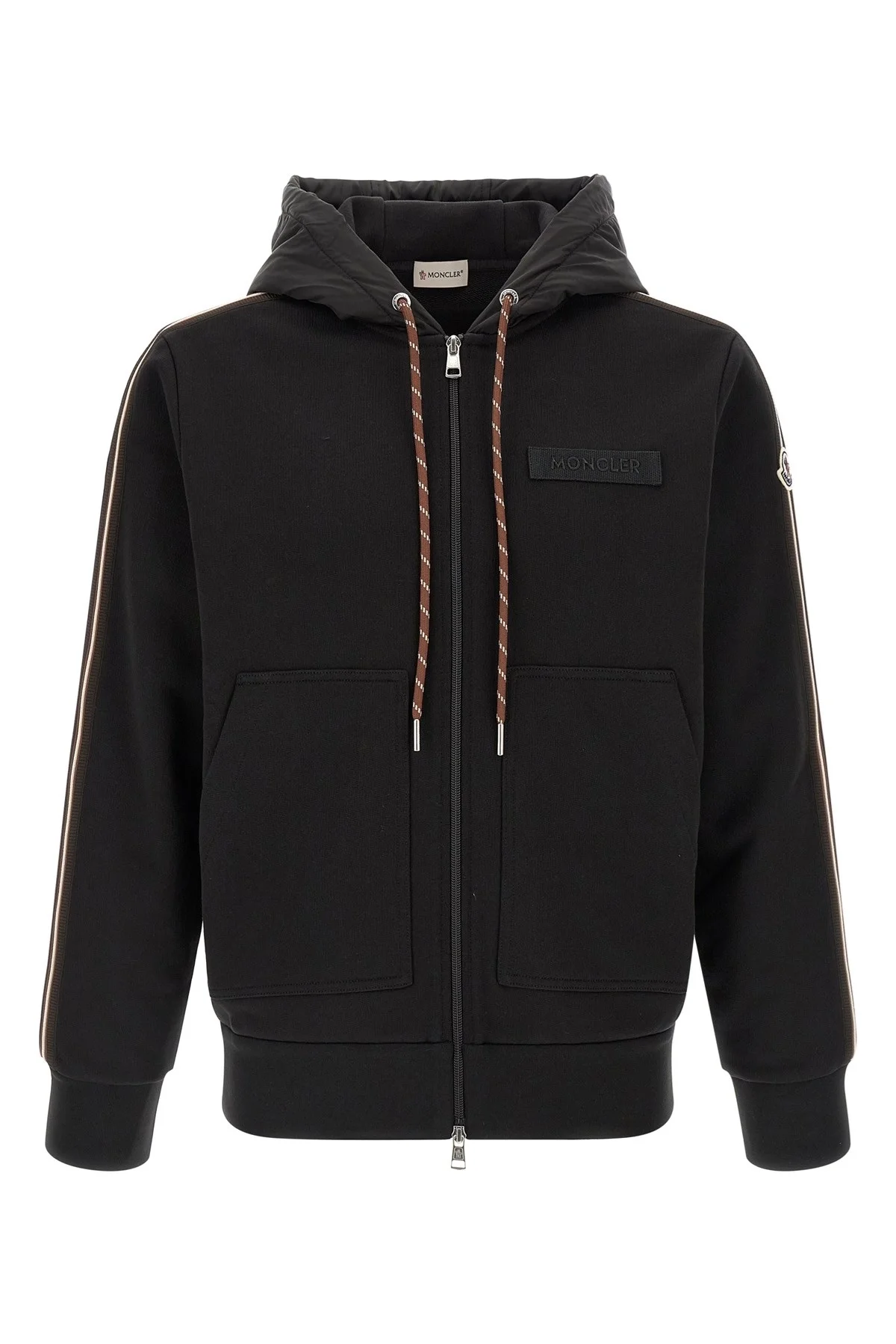 cod. L10918G00042899V4999 Brushed cotton sweatshirt, adjustable tone-on-tone nylon hood, tone-on-tone embroidered logo patch and front zip closure, pockets, long cuffed sleeves, tricolor finish and felt logo patch, headband. Color: Black Size & Fit: true to size fit Composition: 100% polyamide Made in: Turkey