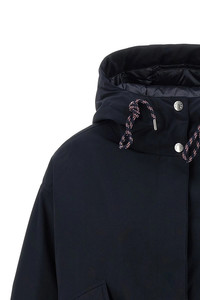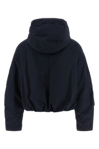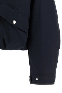 cod. L10931A000185994N742 'Eucalyptus' short down jacket in cotton and polyester blend, quilted and slightly quilted goose feather long saison ue lining, cropped style, adjustable hood, high neck, zip and snap button closure, pockets, long cuffed sleeves, dropped shoulders and felt logo patch, drawstring on the hem. Color: Blue Size & Fit: oversized fit Composition: 84% polyester, 16% cotton Made in: Romania PROMO CODE NOT APPLICABLE