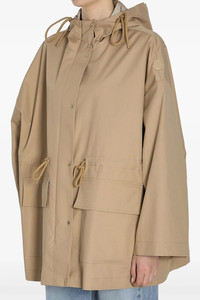 cod. K10931A0005954A3K209 'Gaillon' smooth cotton parka with a three-layer construction, adjustable drawstring hood, zip and snap button closure, pockets, long wide sleeves with dropped shoulders and tone-on-tone leather logo patch, adjustable drawstring at the waist. Color: Beige Size & Fit: oversized fit Composition: 87% cotton, 13% polyester Made in: Romania