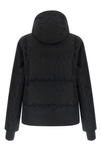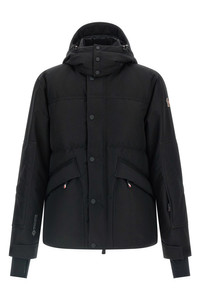 cod. K20971A00014597MO999 'Elfin' ski jacket in water-repellent quilted tech fabric with goose down padding, adjustable and removable hood, high neck with tone-on-tone corduroy lining, YKK® AquaGuard® Highly Water-Resistant zip closure and front snap buttons, pockets, long sleeves with windproof cuffs and logo patch applique, drawstring hem and inner gaiter. Color: Black Size & Fit: true to size fit Composition: 100% polyester Made in: Romania