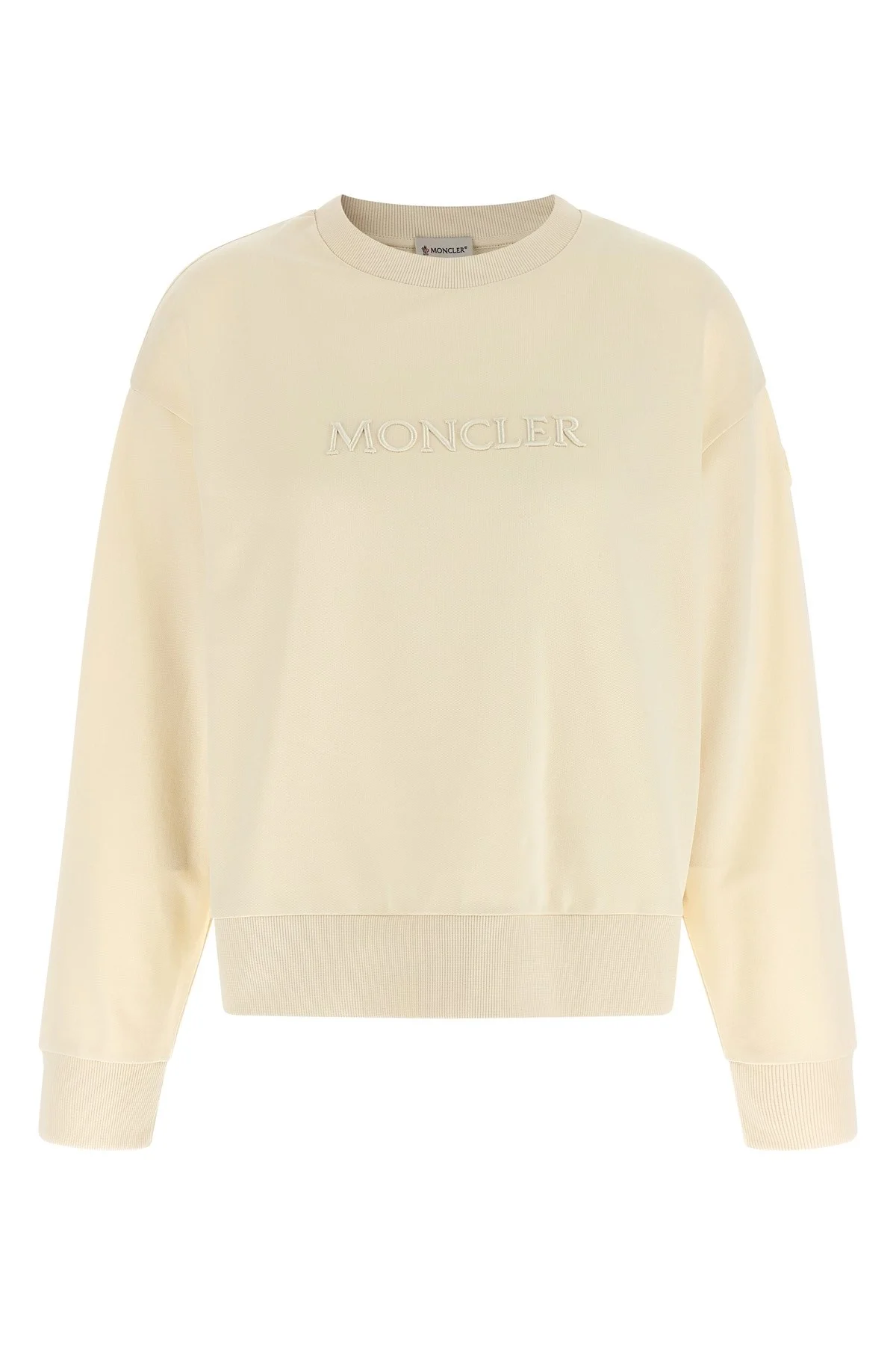 cod. L10938G0002089B2V034 Brushed cotton sweatshirt with tone-on-tone logo embroidery on the front, crew neck, long cuffed sleeves, dropped shoulders and felt logo patch applique. Color: Beige Size & Fit: Comfort fit Composition: 100% cotton Made in: Turkey
