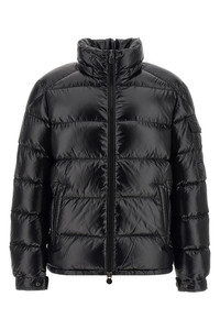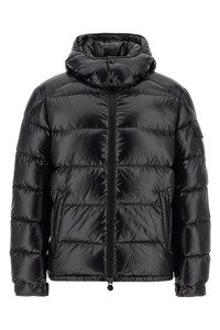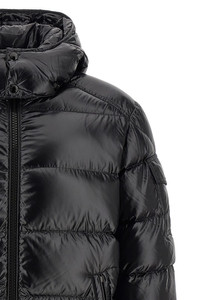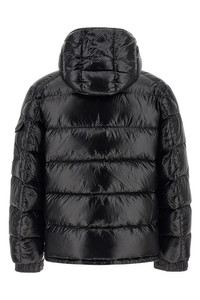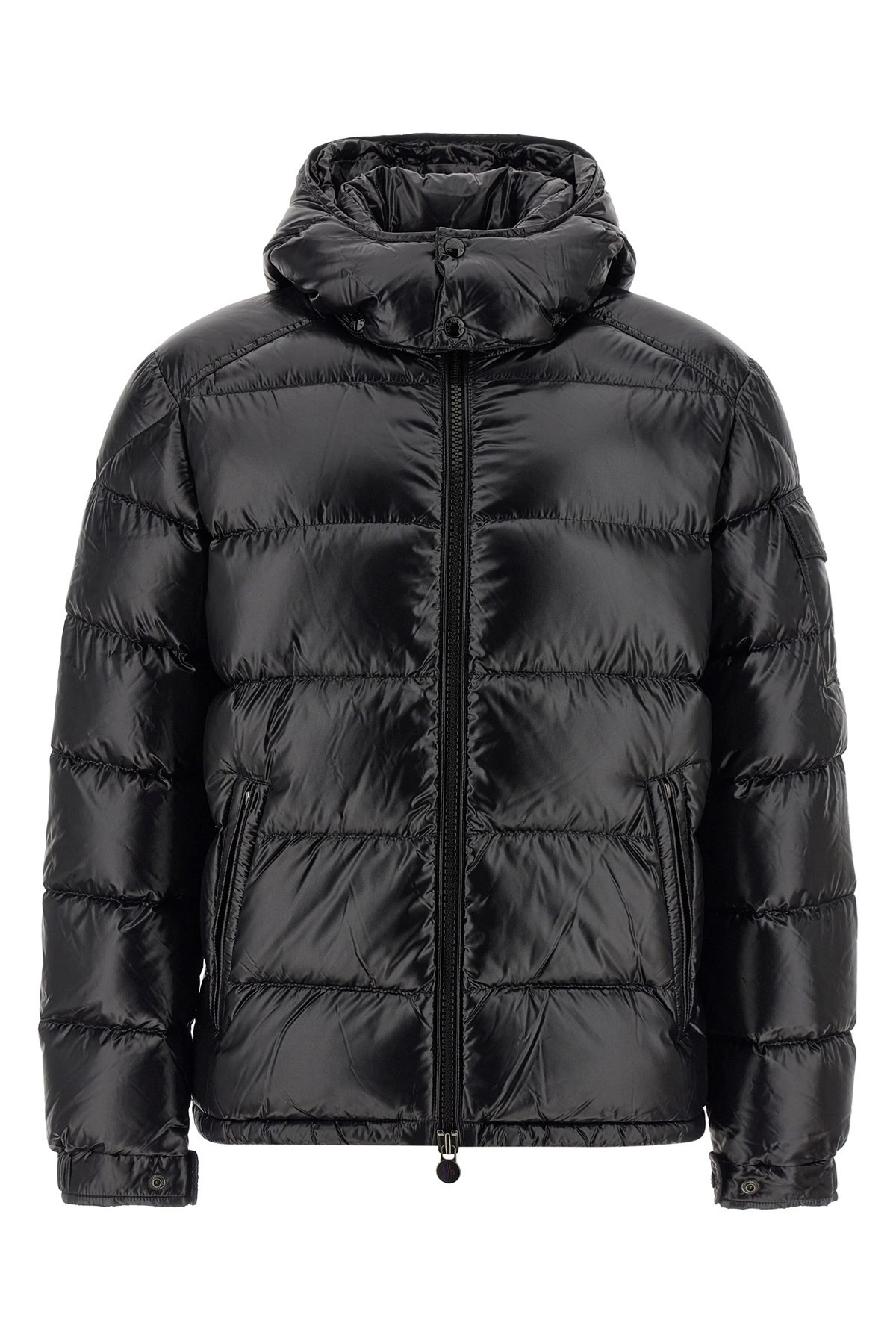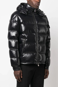 cod. K20911A5360068950999 'Moncler Maya' quilted nylon laque down jacket with goose down padding, adjustable and removable hood, standing collar, front zip closure, pockets, long sleeves with elastic and adjustable cuffs, felt logo patch, drawstring at the hem. Color: Black Size & Fit: true to size fit Composition: 100% polyamide Made in: Romania PROMO CODE NOT APPLICABLE