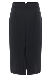 cod. K24038H0000189A8K999 Moncler x Edward Enninful midi skirt in unlined scuba-effect fabric with longuette model, tone-on-tone logo patch, split and back pince, and side zip closure. Color: Black Size & Fit: true to size fit Composition: 87% polyester, 13% elastane Made in: Italy PROMO CODE NOT APPLICABLE