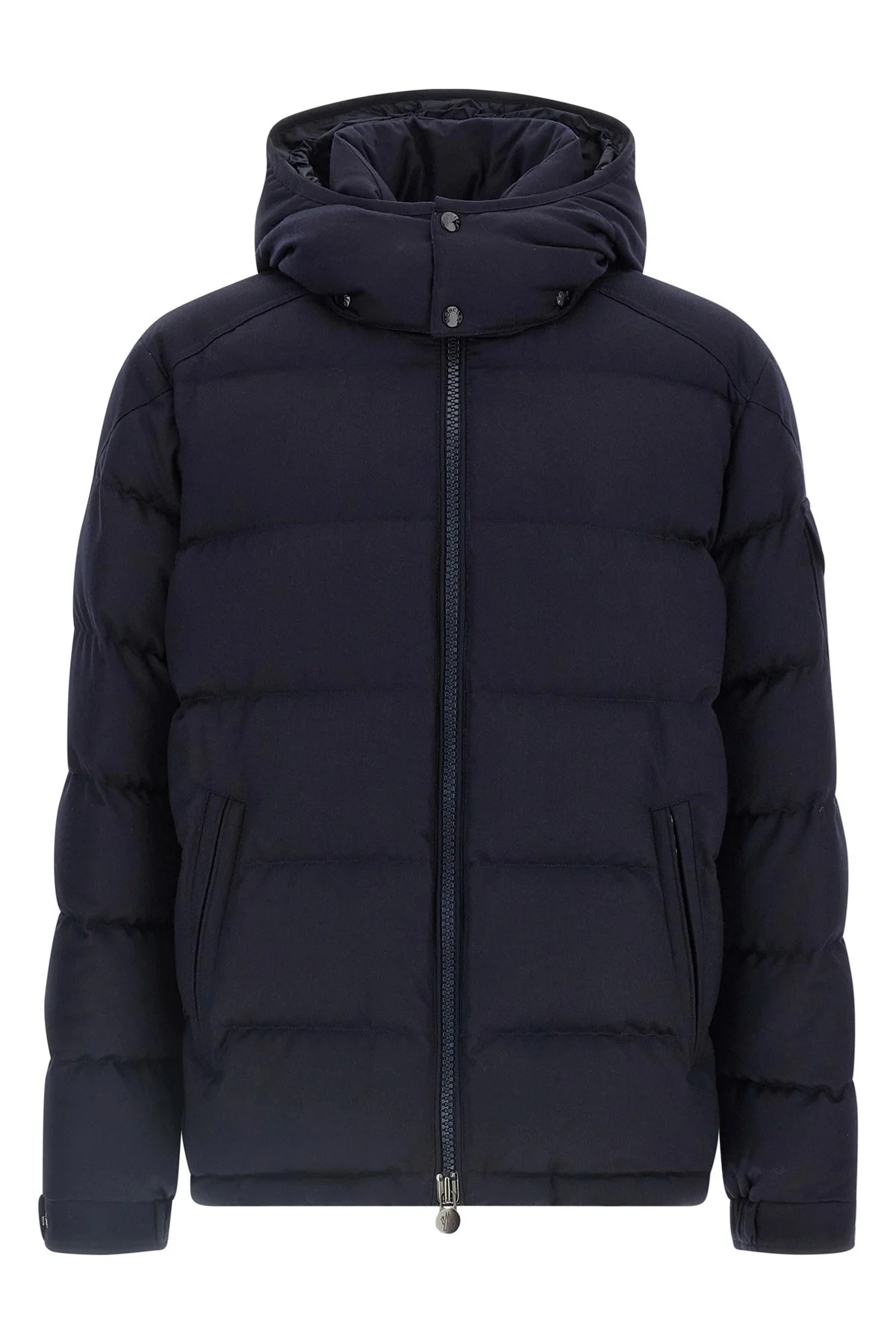 cod. K20911A5370054272742 'Montgenevre' quilted wool flannel down jacket, leger nylon lining with goose down padding, adjustable and removable hood, standing collar, front zip closure, pockets, long cuffed sleeves and felt logo patch, drawstring at the hem. Color: Blue Size & Fit: true to size fit Composition: 100% virgin wool Made in: Romania PROMO CODE NOT APPLICABLE