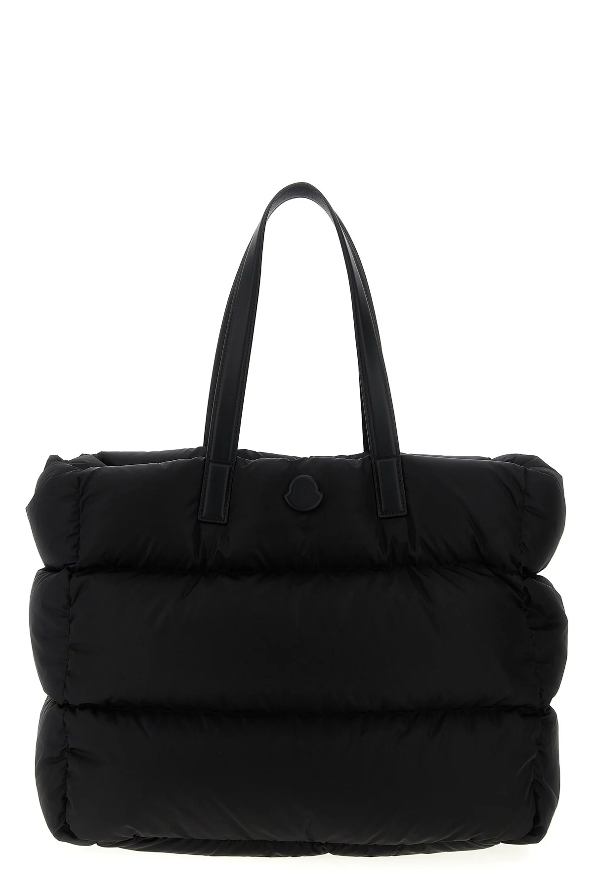 cod. K209A5D00010M7451999 New Caradoc' water-repellent padded boudin quilted nylon shop, tone-on-tone logo patch on the front, double leather handle, snap hook closure, adjustable and removable shoulder strap. Color: Black Size & Fit: W 42 x H 33 x D 20 cm Composition: 100% polyamide Made in: Italy