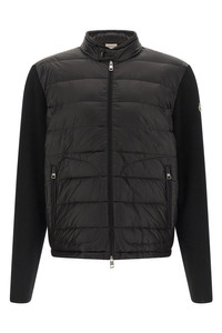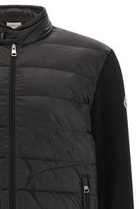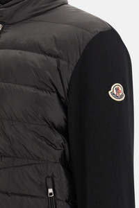 cod. L10919B00018M1131999 Fineness 12 extra-fine wool yarn cardigan with quilted and padded extra leger nylon front, high neck, front zip closure, pockets, long cuffed sleeves and felt logo patch applique. Color: Black Size & Fit: true to size fit Composition: 100% polyamide Made in: Moldova PROMO CODE NOT APPLICABLE