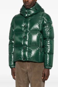 cod. K20911A00187597Z8866 Parana' nylon laque down jacket with glossy quilted finish and goose down padding, contrast lining, adjustable and removable hood, standing collar, front zip and snap button closure, pockets, long sleeves with elastic cuffs and felt logo patch, drawstring at the hem. Color: Green Size & Fit: true to size fit Composition: 100% polyamide Made in: Romania