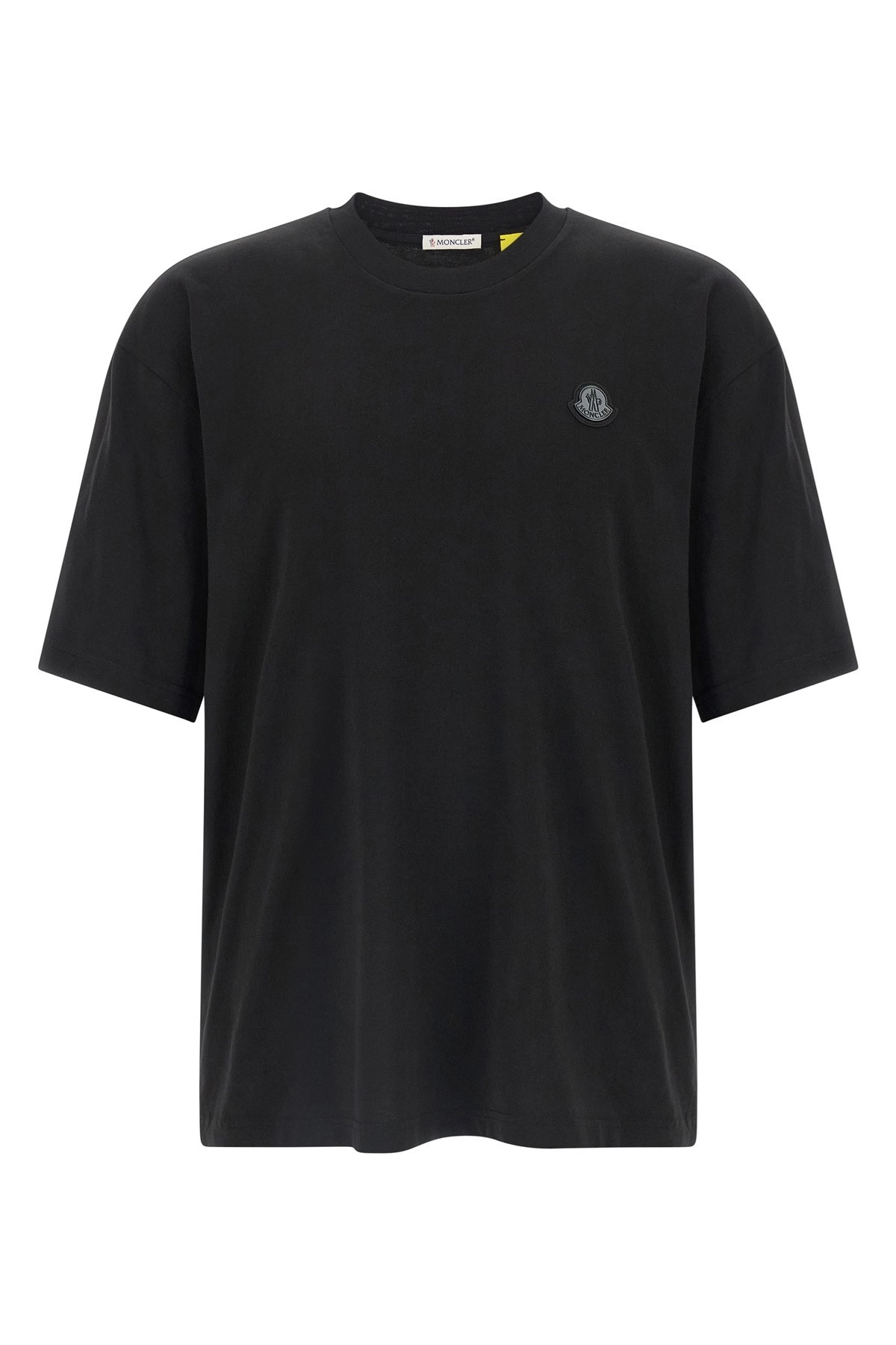 cod. K24048C0000289AYW999 Moncler x Asap Rocky cotton, crewneck t-shirt with front logo patch, back print and short sleeves. Color: Black Size & Fit: True to size fit Composition: 100% cotton Made in: Turkey