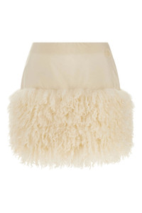 cod. K20932D00041539ZD04A Technical nylon miniskirt with long-haired teddy-effect fleece insert, tone-on-tone felt logo patch on the front, side zip closure. Color: White Size & Fit: true to size fit Composition: 100% polyamide Made in: Romania