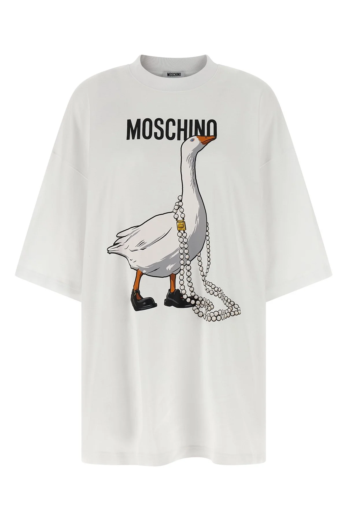 cod. V044005421001 Heavy cotton t-shirt mini dress with front 'Goose' print, crew neck, short sleeves with dropped shoulders. Color: White Size & Fit: oversized fit Composition: 100% cotton Made in: Portugal