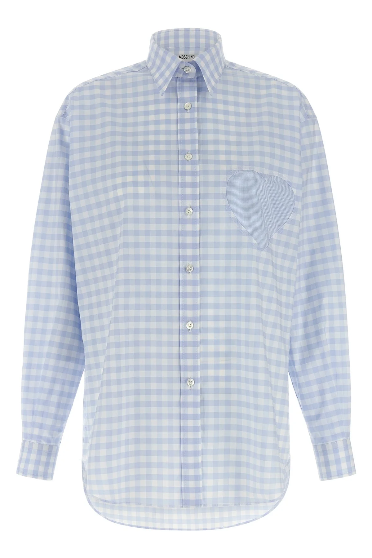 cod. A020505363266 Long shirt in vichy cotton poplin with micro vichy pattern 'Heart' patch and front button closure, long sleeves with cuffs and dropped shoulder, tone-on-tone logo embroidery on the back, rounded hem. Color: Light Blue Size & Fit: Comfort fit Composition: 100% cotton Made in: Italy