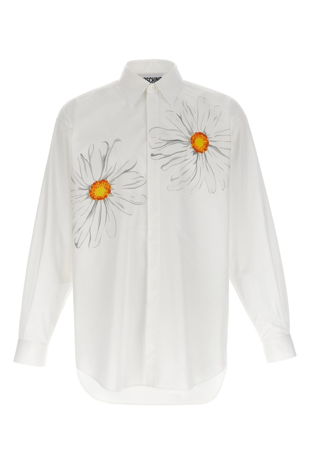 cod. A022002351001 Cotton poplin shirt with front 'Margherite' print, front closure with covered buttons, long sleeves with cuffs. Color: White Size & Fit: True to size fit Size collar Composition: 100% cotton Made in: Italy