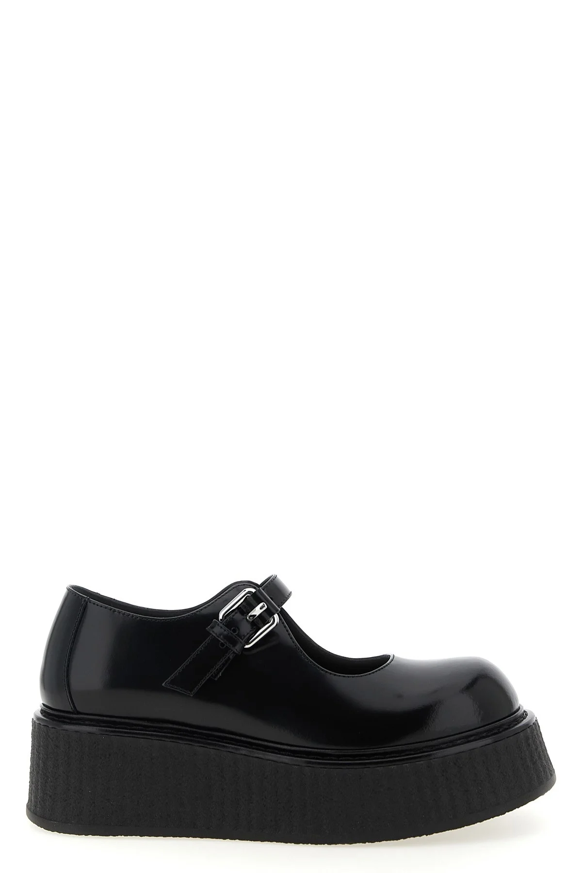 cod. MA10806I1NMG500A Mary Jane 'Olivia' in leather with adjustable strap, rounded toe, wedge covered in wavy crepe, rubber sole. Color: Black Size & Fit: EU WOMEN Composition: 100% vl Made in: Italy