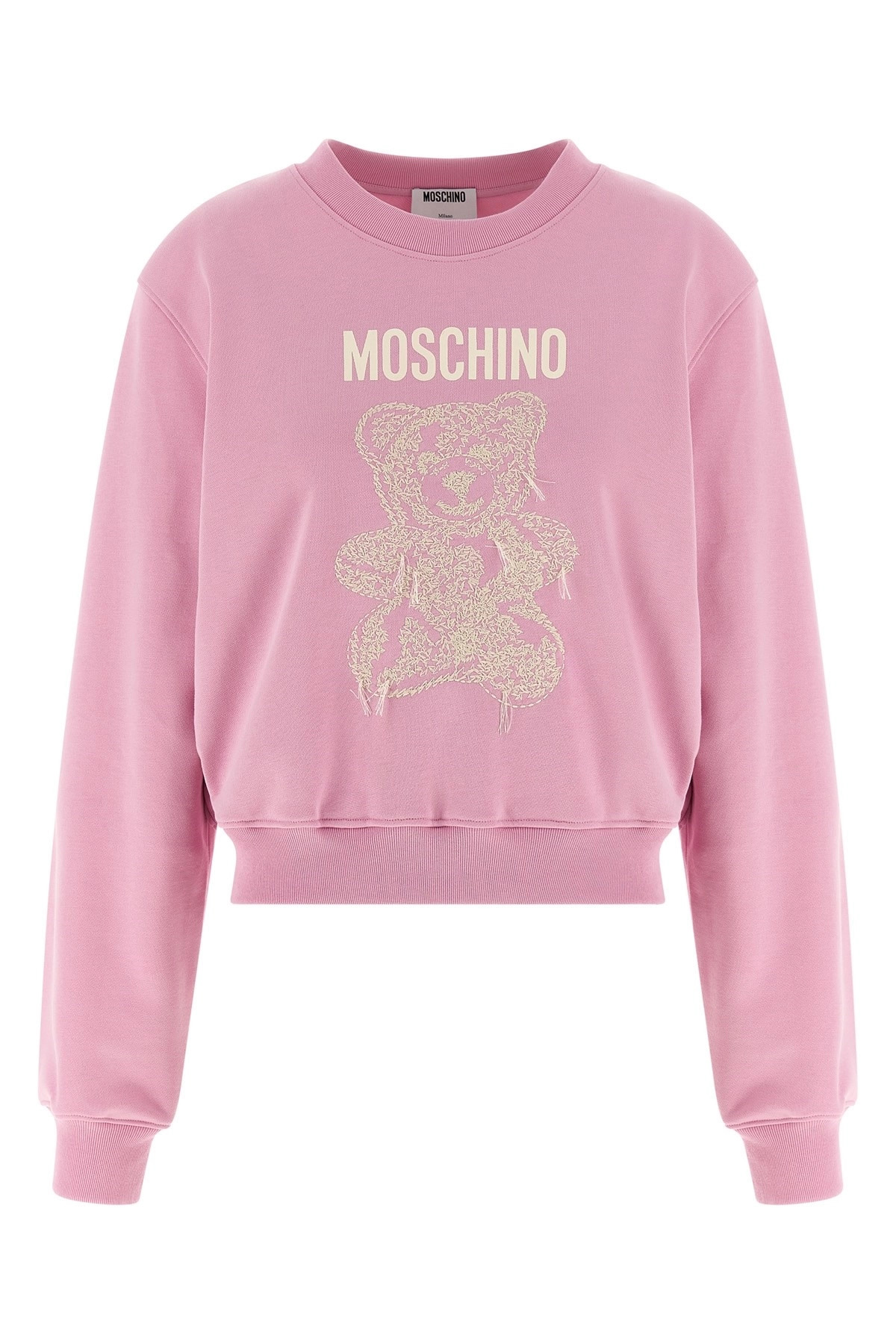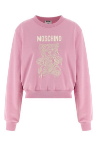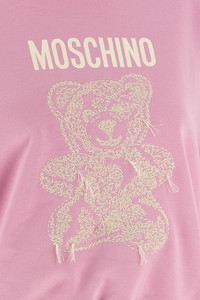 cod. A170554282240 Brushed cotton sweatshirt, printed and embroidered 'Moschino Teddy Bear' on the front, crew neck, long sleeves with cuffs and dropped shoulders. SUSTAINABLE: This product is made of organic cotton. Color: Pink Size & Fit: true to size fit Composition: 100% cotton Made in: Portugal