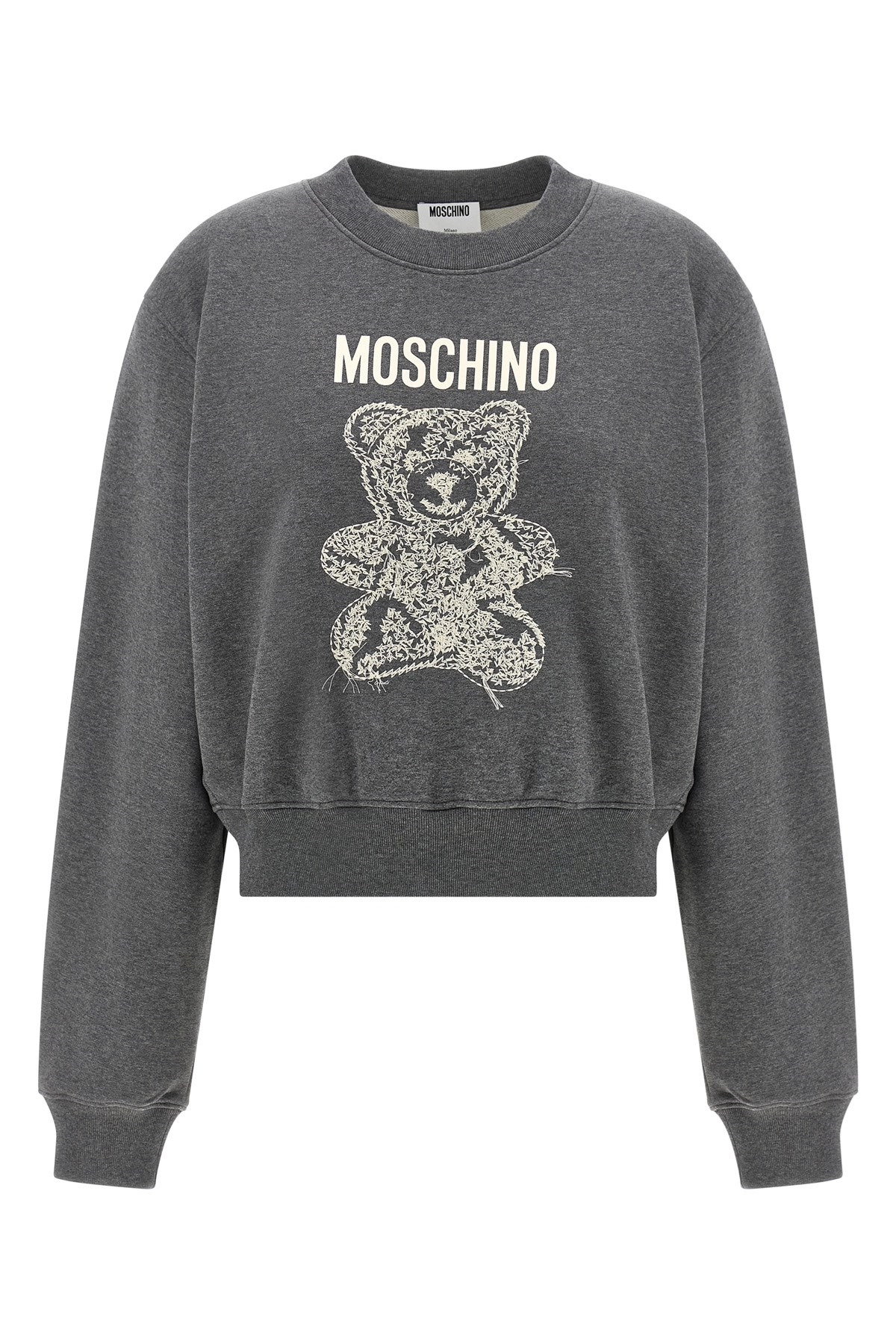 cod. A170554282499 Brushed cotton sweatshirt, printed and embroidered 'Moschino Teddy Bear' on the front, crew neck, long sleeves with cuffs and dropped shoulders. Color: Gray Size & Fit: true to size fit Composition: 100% cotton Made in: Portugal