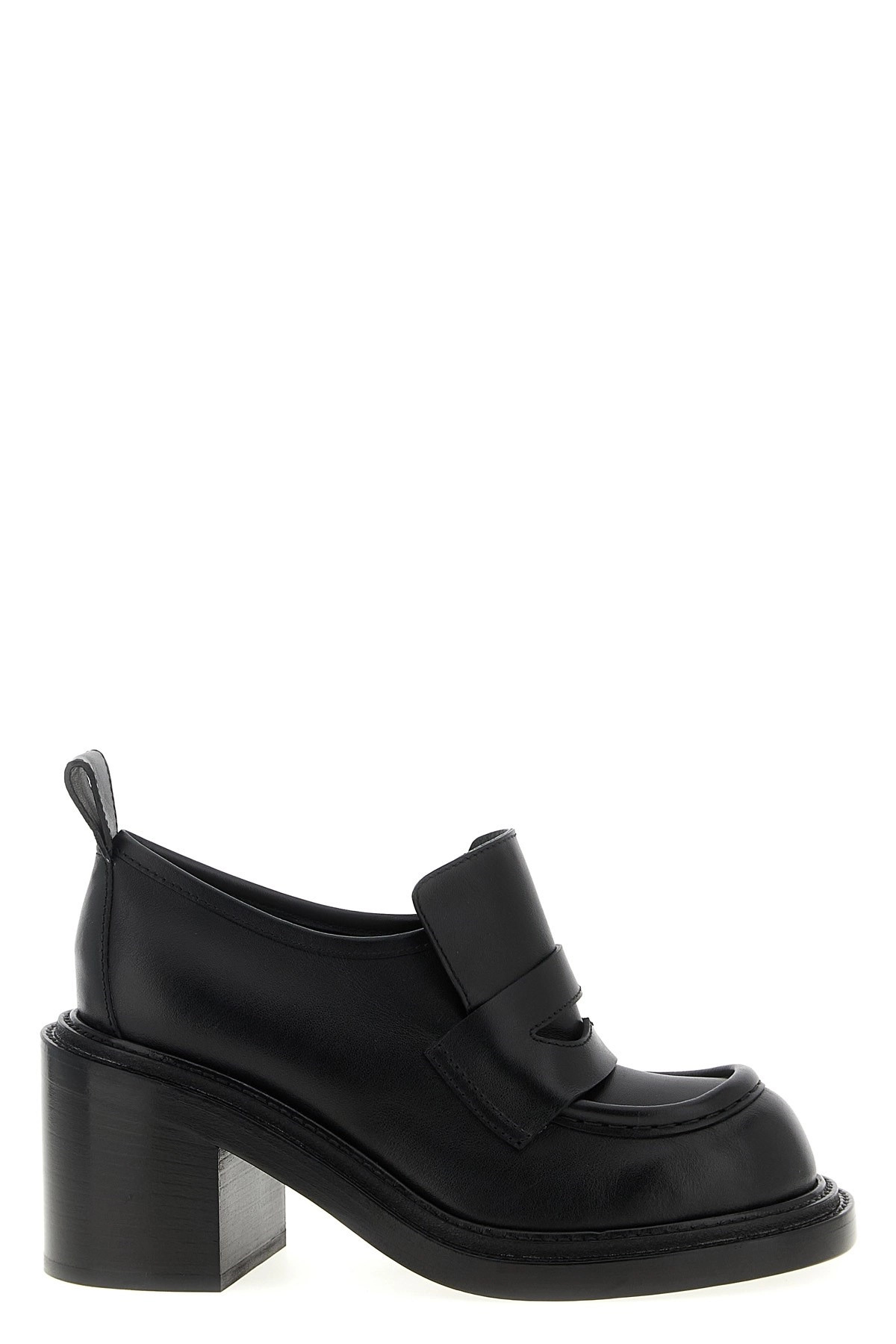 cod. MA10728C1NMF0000 'Olivia' loafers in brushed calfskin, college model, two-layer construction with double welt and geometric heel. Color: Black Size & Fit: EU WOMAN - Heel: 9 cm Composition: 100% leather Made in: Italy
