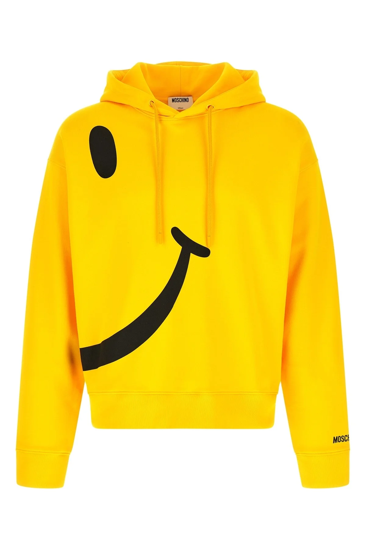 cod. A171102281027 Gauze cotton hoodie with 'Smiley®' print on the front and back, long sleeves with cuffs and dropped shoulders, and headband on the hem. Color: Yellow Size & Fit: oversized fit Composition: 100% cotton Made in: Portugal