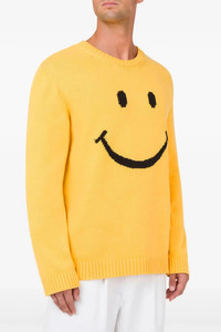 cod. A091502070028 'Smiley' intarsia, crewneck sweater in cotton blend with back logo, long sleeves. SUSTAINABLE: This product is made of organic cotton. Color: Yellow Size & Fit: True to size fit Composition: 62% cotton, 38% polyamide Made in: Italy