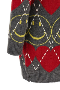 cod. A048655021506 Wool blend mini dress with heart and 'Smiley®' inlays and diamond-stitched pattern, crew neck, long cuffed sleeves, and leather logo patch at the back. Color: Multicolor Size & Fit: true to size fit Composition: 36% wo, 32% pa, 27% vi, 5% ws Made in: Italy