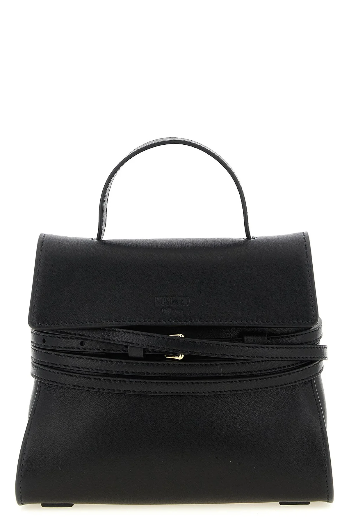 cod. MC4163PP1OOA0000 'Tie Me' nappa handbag with fixed handle and adjustable and removable shoulder strap, button closure, buckle strap detail. Color: Black Size & Fit: W 20 x H 18 x D 11 cm Composition: 100% nappa leather Made in: Italy