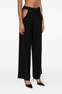 cod. 23W1PA03961821999 'Cut-Out' wool blend trousers, hook, button and zip closure, cut-out details at the waist, wide leg with central crease. Color: Black Size & Fit: True to size fit French size Composition: 76% viscose 24% virgin wool Made in: Ukraine