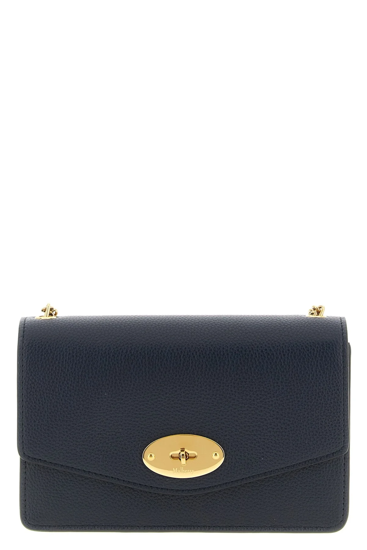 cod. RL7791205U888 'Drley small' crossbody bag front closure with flap and metal swivel, metal chain shoulder strap and leather insert. Color: Blue Size & Fit: w 19 X h 12 X d 5 cm Composition: 100% calfskin leather (Bos Taurus) Made in: Turkey