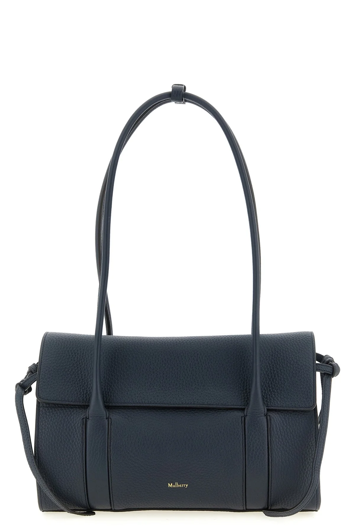 cod. HH9382736U888 Small Soft Bayswater shoulder bag in hammered leather with front embossed logo, magnetic flap closure on the top, double fixed handle, and side tassels. Color: Blue Size & Fit: W 32.5 x H 20.5 x D 19 cm Composition: 100% calfskin leather (Bos Taurus) Made in: United Kingdom