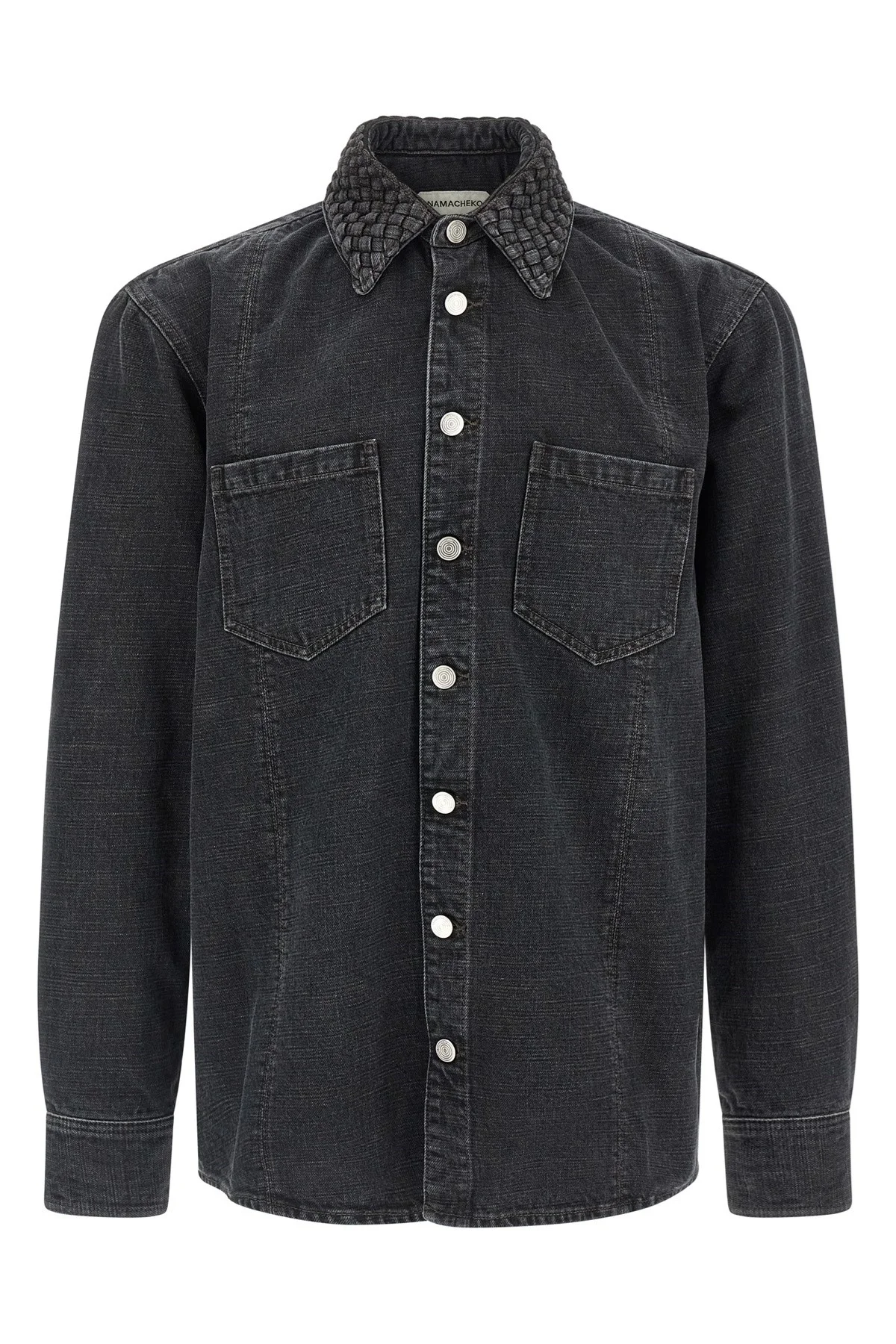 cod. NW25410N14009200 'Gervis Braided' denim shirt made of flamed yarn woven like a canvas and stone washed with streaked effect, braided collar, pockets, front button closure, long sleeves with cuffs and dropped shoulder. Color: Black Size & Fit: true to size fit Composition: 100% cotton Made in: Tunisia