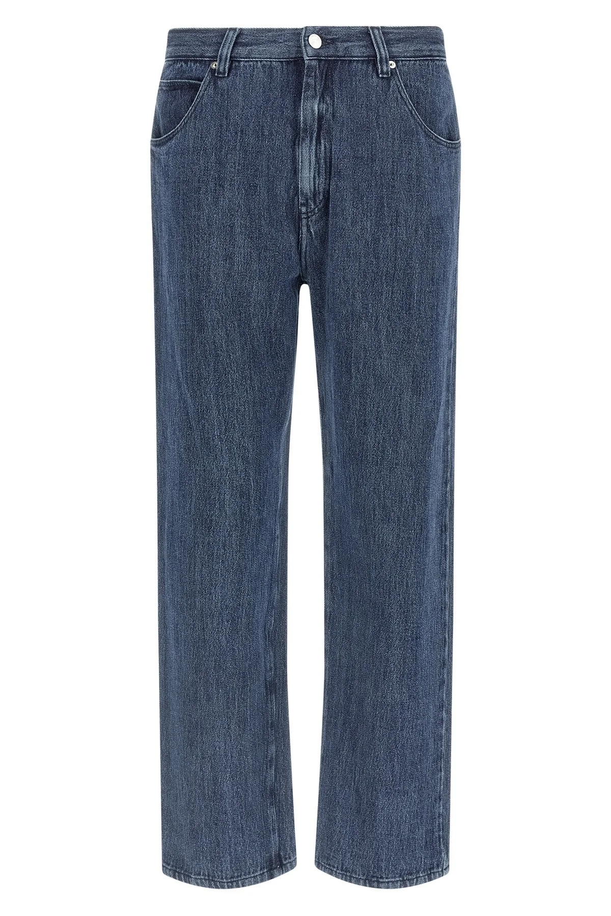 cod. NW25511N1350WA5300 'Warkworth' jeans in light cotton and linen blend, regular waist, straight leg, front zip and button closure, five pockets, back logo tag. Color: Blue Size & Fit: true to size fit Composition: 56% cotton, 44% linen