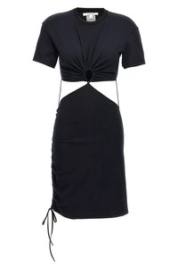 cod. NDSS23DR110BLACK Cotton t-shirt dress with cut out details at the front and back, crewneck, short sleeves and a drawstring, gatherable on the side on the bottom hem. Color: Black Size & Fit: True to size fit Composition: 100% cotton