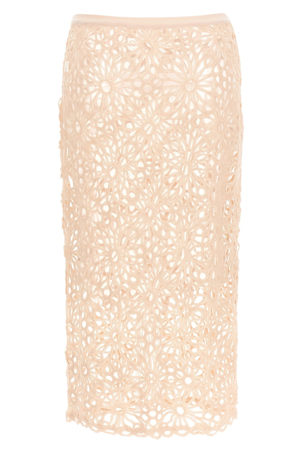 cod. ST125SCRP42832 'Crochet' floral midi skirt, sheath dress model with elastic waistband, sempitransparent. Color: Pink Size & Fit: True to size fit Composition: 90% cotton, 10% polyamide Made in: China
