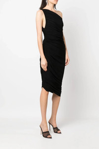 cod. KK2223PL667001 ‘Diana' one-shoulder stretch fabric dress with draped side and asymmetric hem. Color: Black Size & Fit: True to size fit Composition: 95% polyester 5% spandex Made in: China