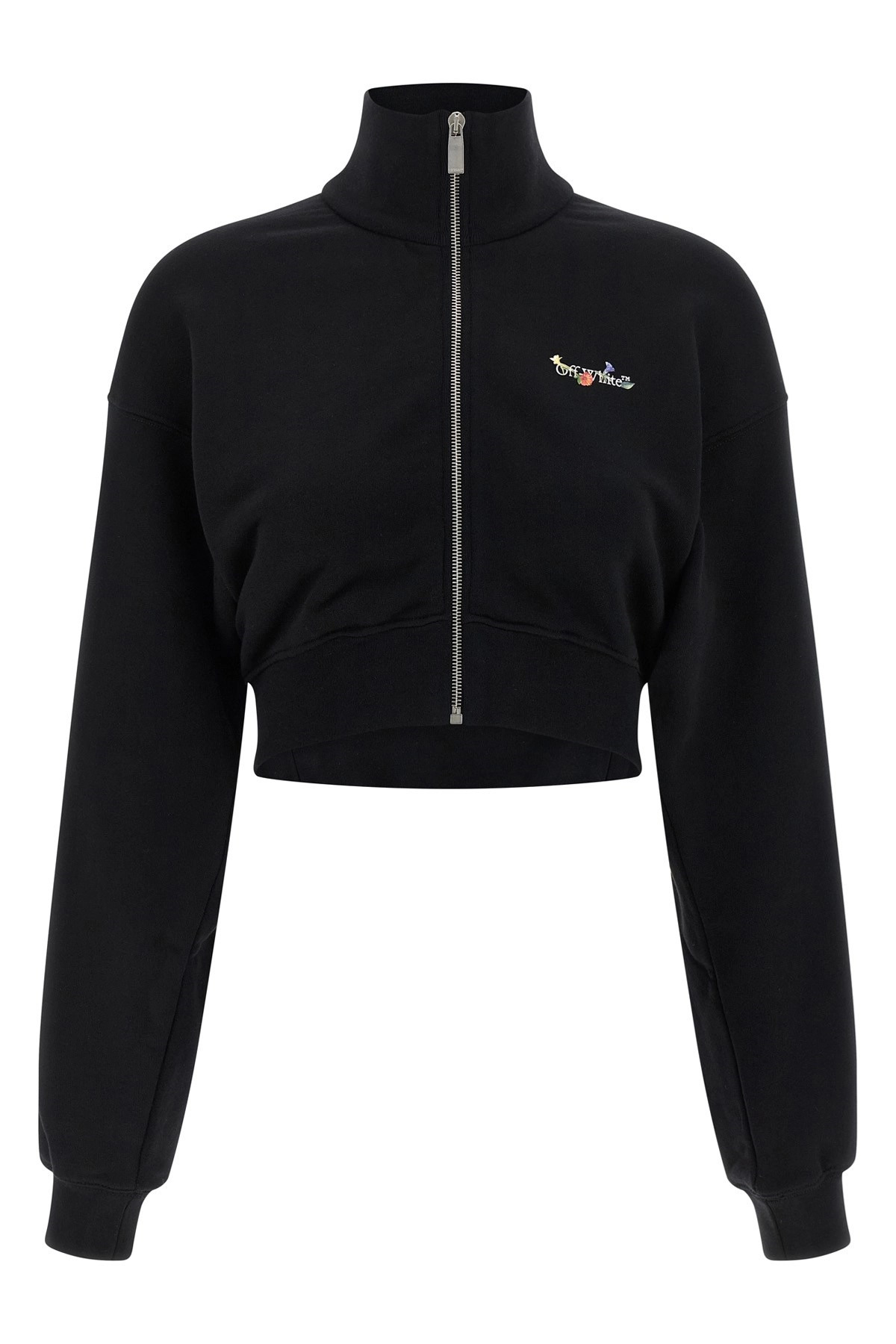 cod. OWBE006F25FLE00210011001 Brushed cotton sweatshirt with 'Arrow Glass Flower' print on the front and back, crop model, high neck, front zip closure, pockets, long sleeves with cuffs and dropped shoulders. Color: Black Size & Fit: oversized fit Composition: 100% cotton Made in: Portugal
