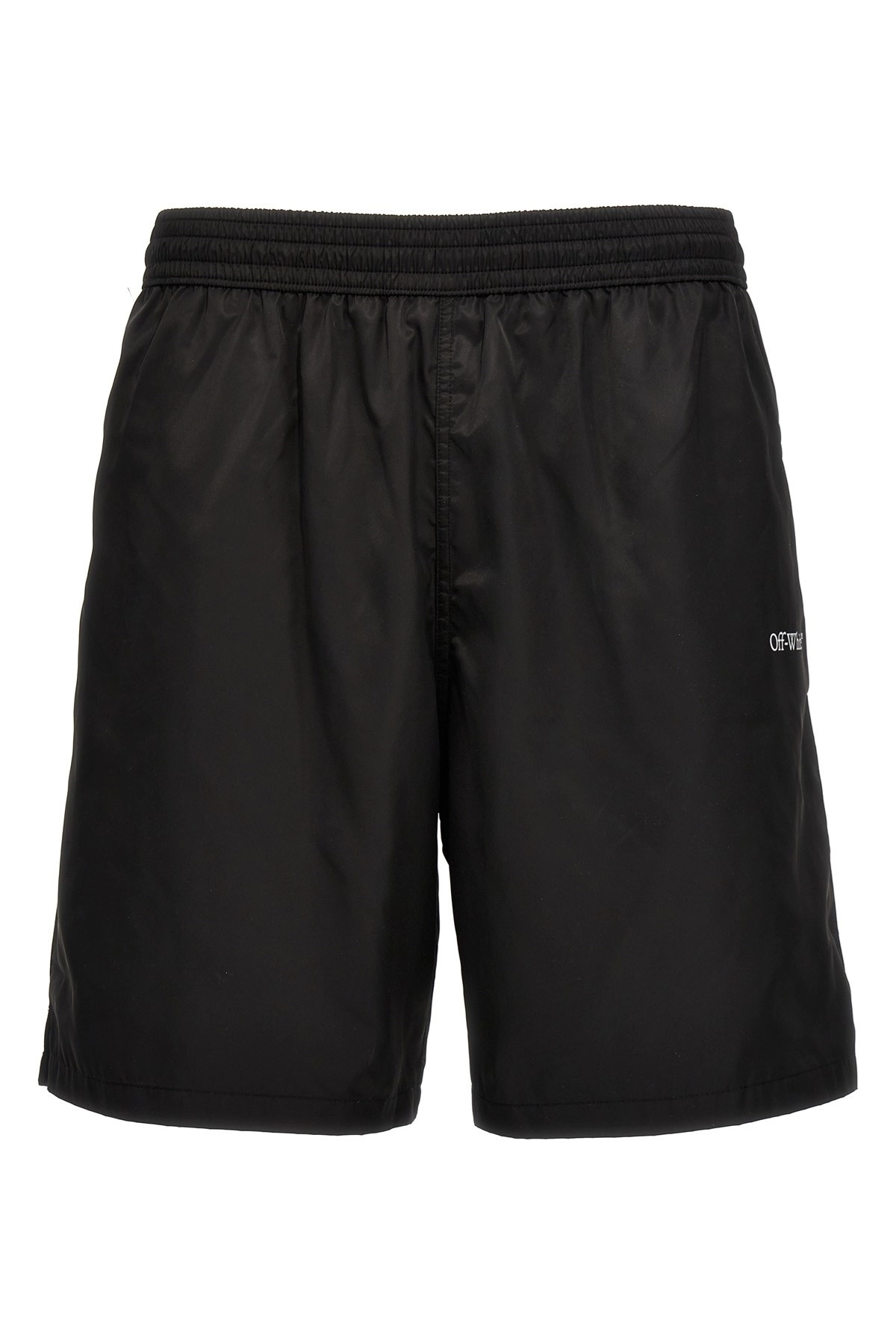 cod. OMFD008C99FAB00110011001 'Arrow Surfer' nylon swim shorts with logo print, drawstring elastic waistband, pockets, inner mesh briefs. Color: White/Black Size & Fit: True to size fit Composition: 100% polyester