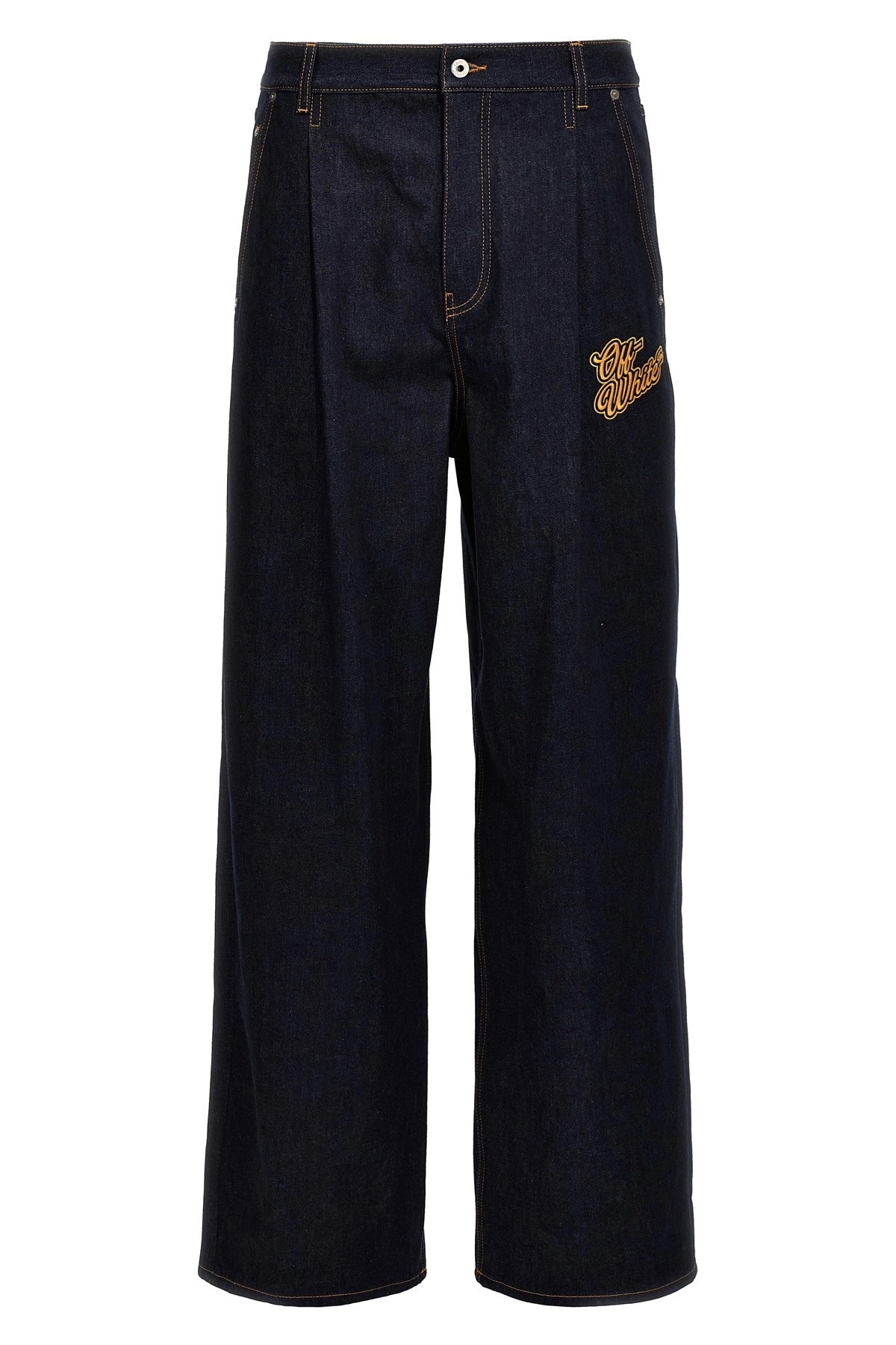cod. OMYA185S24DEN00145224522 'Baggy tapered' wide cotton denim jeans with tapered leg, button closure, logo embroidery detail. Color: Blue Size & Fit: Comfort fit Composition: 100% cotton