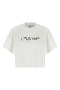 cod. OWAA090S26JER00101100110 Cotton jersey cropped t-shirt with front 'Bookish Glowing Flower' print, crew neck, short sleeves. Color: White Size & Fit: oversized fit Composition: 100% cotton Made in: Portugal