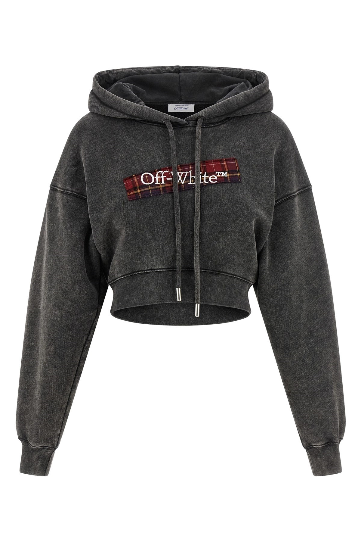 cod. OWBB056F25FLE00313011301 'Check Flan Bookish' hoodie in gauze cotton delave, front logo patch, crop model, long sleeves with cuffs and dropped shoulders. Color: Gray Size & Fit: oversized fit Composition: 100% cotton Made in: Portugal